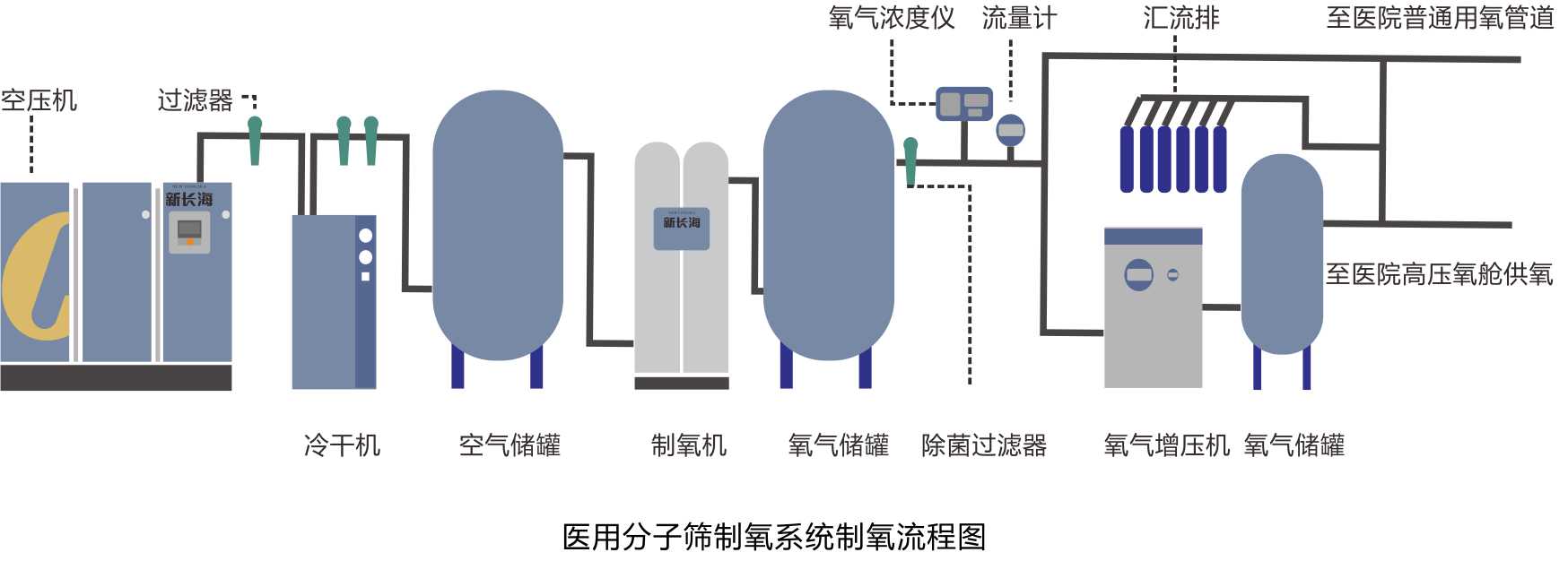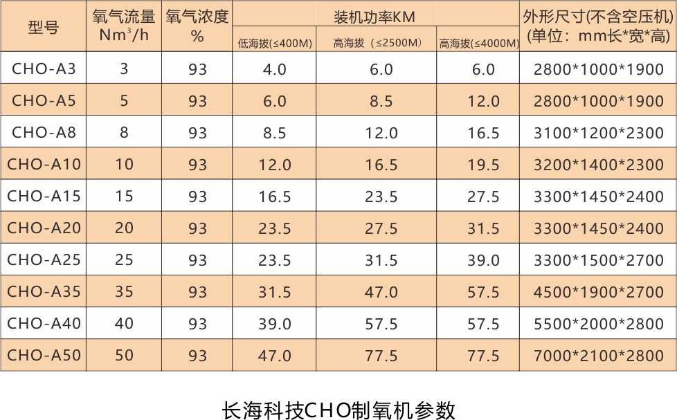 ●長海CHO-G系列型號,采用高純制氧工藝流程,氧濃度可達(dá)到99.5%。